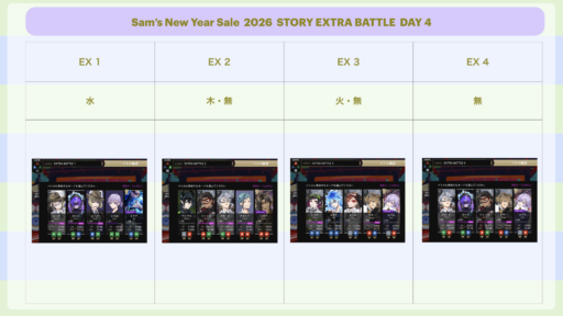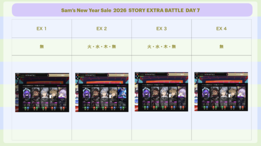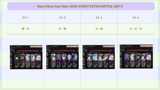 ①Sam‘s NewYearSaleのイベントストーリーとバトルをクリアしていく
